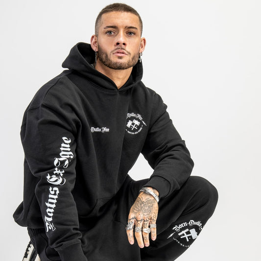 Born Outta Fire Black Vulcan Hoody with Beige Print